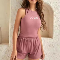 Vêtements de détente femmes ensembles débardeur et short ensemble pyjamas personnalisés vêtements de salon côtelé haut court bambou modal pyjamas vêtements